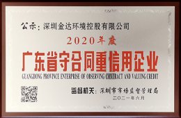喜讯!金达环境荣获广东省“守合同重信用” 企业称号